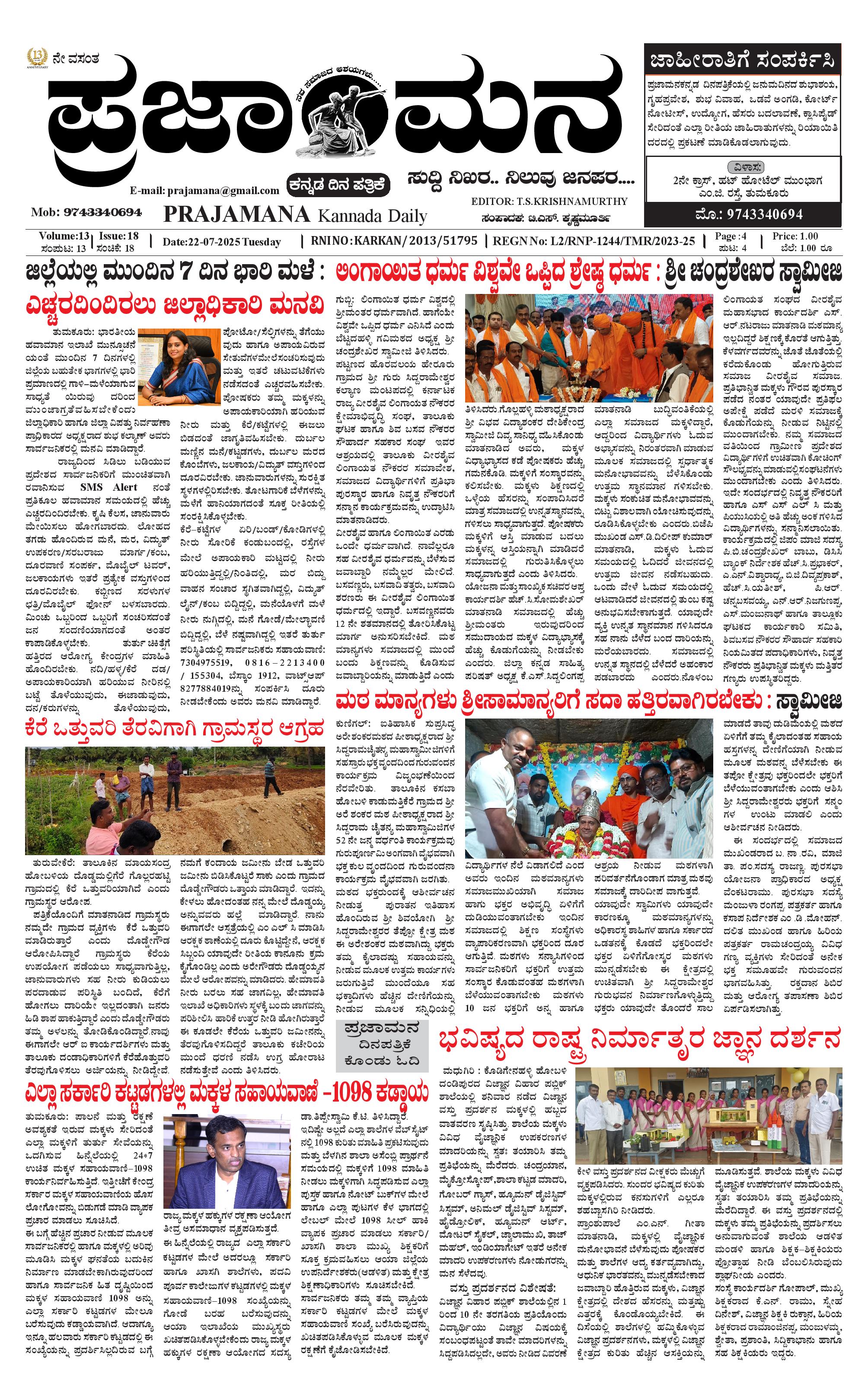 ಪ್ರಜಾಮನ 22 JULY 2025 July 22, 2025 << First << 1 >> Last >> Page 1Page 2Page 3Page 4 × ಪ್ರಜಾಮನ 22 JULY 2025 PRAJAMANA-page-001PRAJAMANA-page-002PRAJAMANA-page-003PRAJAMANA-page-004 << First << 1 >> Last >> PRAJAMANA-page-001PRAJAMANA-page-002PRAJAMANA-page-003PRAJAMANA-page-004 PRAJAMANA-page-001