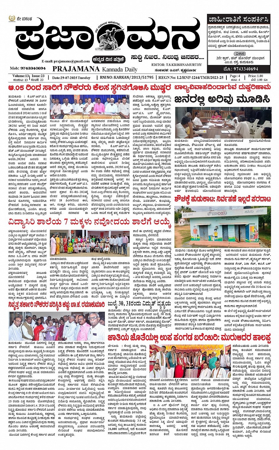 ಪ್ರಜಾಮನ 29 JULY 2025 July 29, 2025 << First << 1 >> Last >> Page 1Page 2Page 3Page 4 × ಪ್ರಜಾಮನ 29 JULY 2025 PRAJAMANA-page-001PRAJAMANA-page-002PRAJAMANA-page-003PRAJAMANA-page-004 << First << 1 >> Last >> PRAJAMANA-page-001PRAJAMANA-page-002PRAJAMANA-page-003PRAJAMANA-page-004 PRAJAMANA-page-001