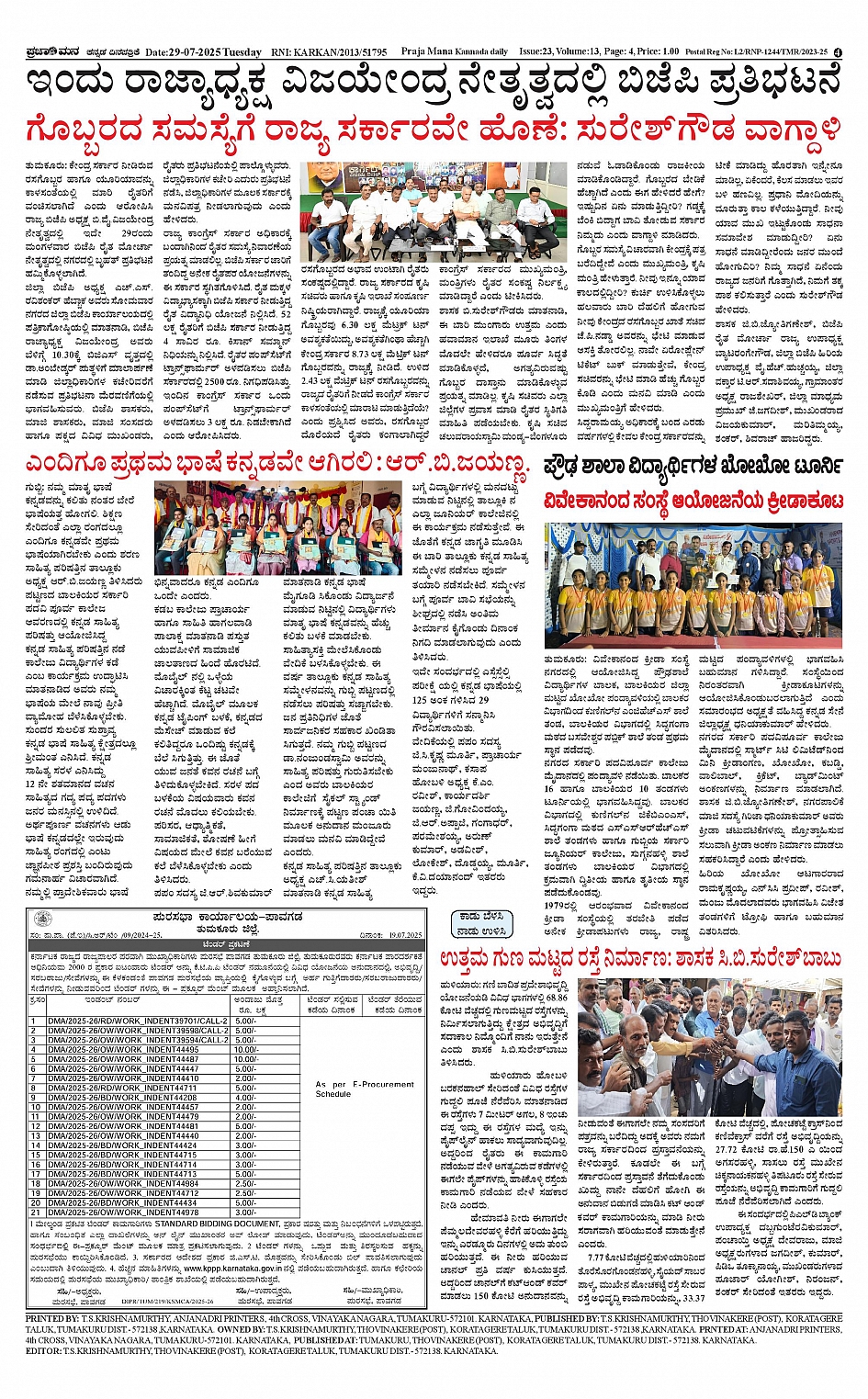 ಪ್ರಜಾಮನ 29 JULY 2025 Page: 4 July 29, 2025 << First << 4 >> Last >> Page 1Page 2Page 3Page 4 × ಪ್ರಜಾಮನ 29 JULY 2025 PRAJAMANA-page-001PRAJAMANA-page-002PRAJAMANA-page-003PRAJAMANA-page-004 << First << 4 >> Last >> PRAJAMANA-page-001PRAJAMANA-page-002PRAJAMANA-page-003PRAJAMANA-page-004 PRAJAMANA-page-004