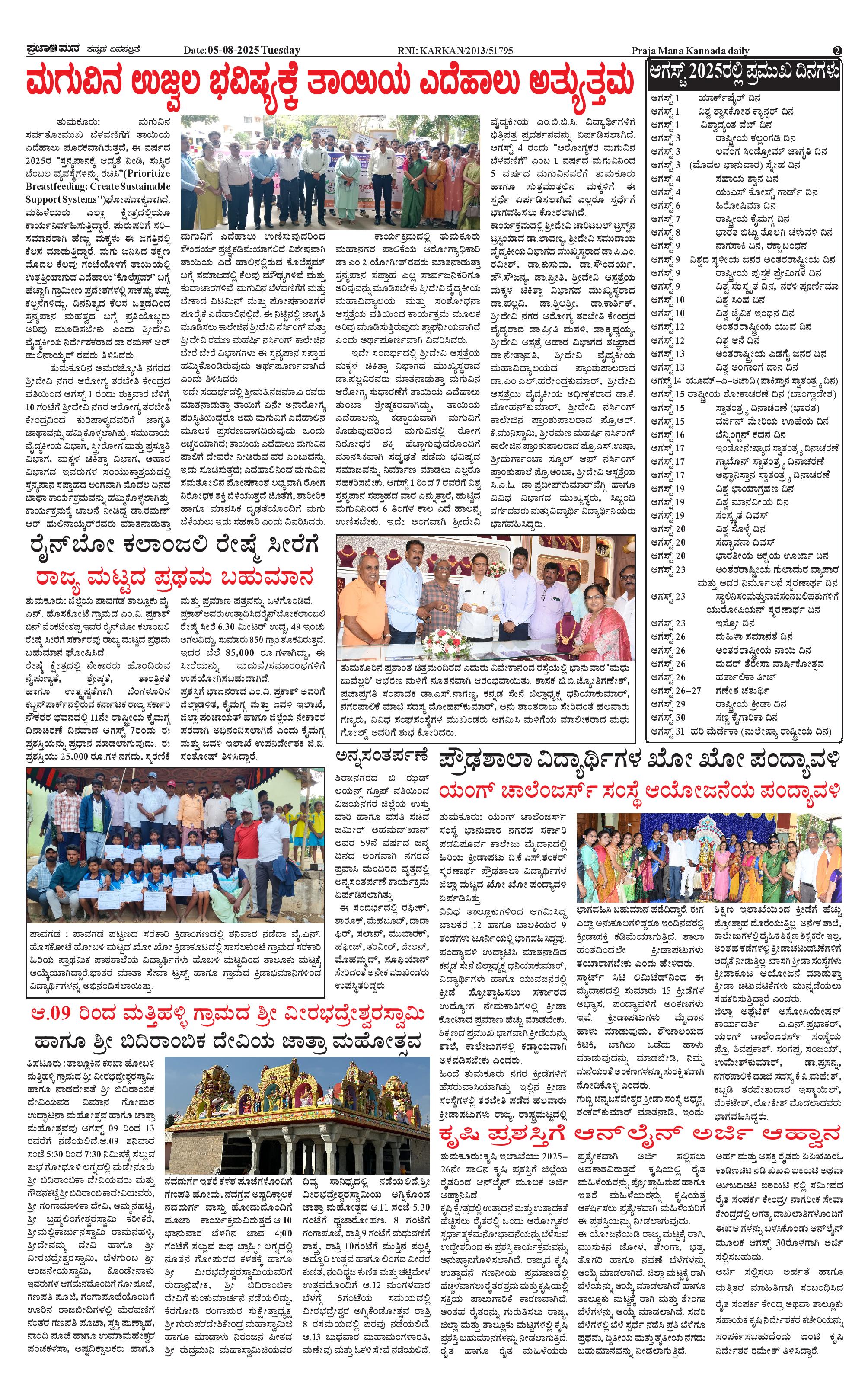 ಪ್ರಜಾಮನ 5 AUGUST 2025 Page: 2 August 05, 2025 << First << 2 >> Last >> Page 1Page 2Page 3Page 4 × ಪ್ರಜಾಮನ 5 AUGUST 2025 PRAJAMANA-page-001PRAJAMANA-page-002PRAJAMANA-page-003PRAJAMANA-page-004 << First << 2 >> Last >> PRAJAMANA-page-001PRAJAMANA-page-002PRAJAMANA-page-003PRAJAMANA-page-004 PRAJAMANA-page-002