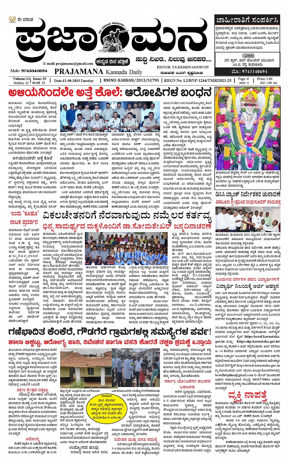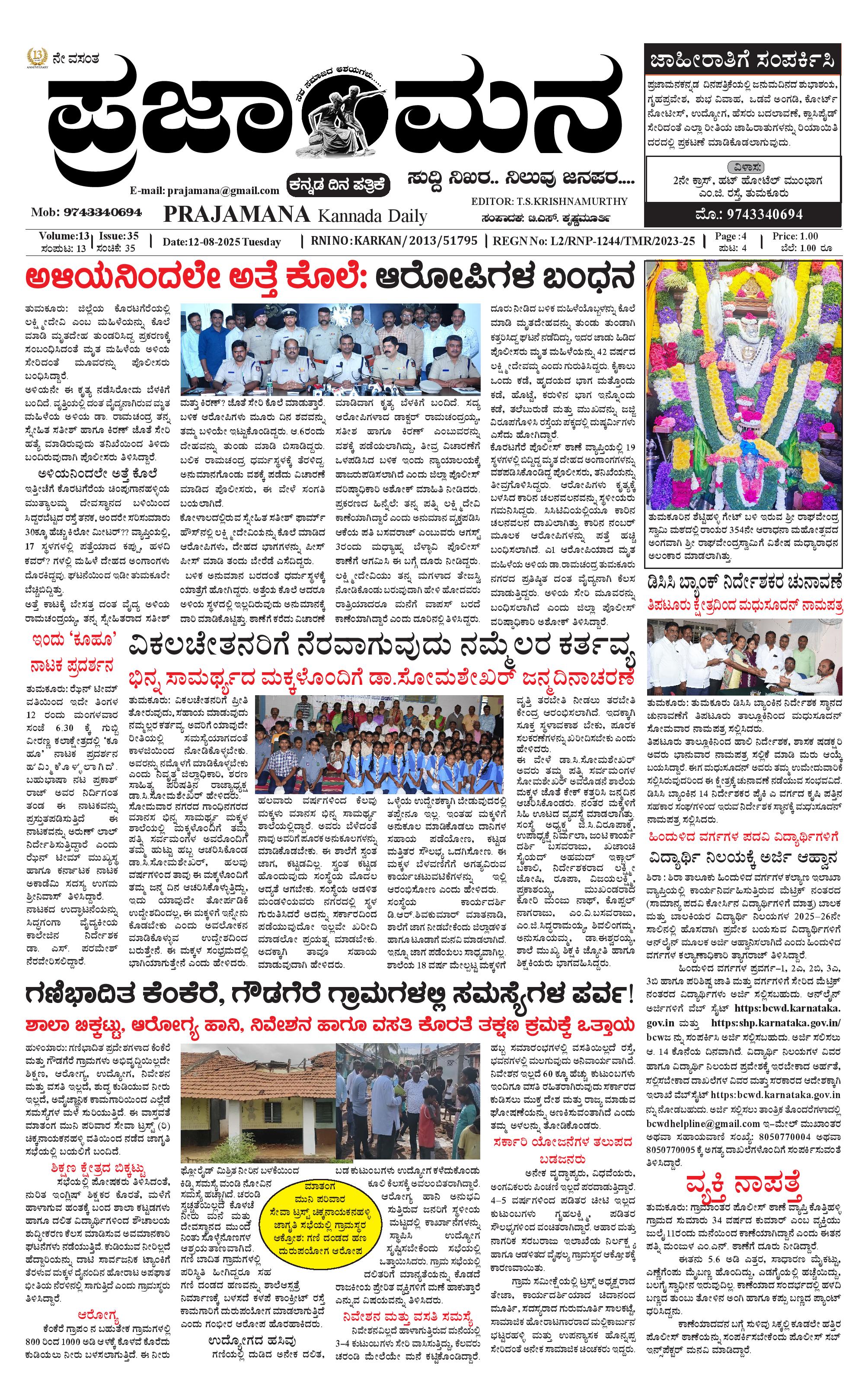 ಪ್ರಜಾಮನ 12 AUGUST 2025 August 12, 2025 << First << 1 >> Last >> Page 1Page 2Page 3Page 4 × ಪ್ರಜಾಮನ 12 AUGUST 2025 PRAJAMANA-page-001PRAJAMANA-page-002PRAJAMANA-page-003PRAJAMANA-page-004 << First << 1 >> Last >> PRAJAMANA-page-001PRAJAMANA-page-002PRAJAMANA-page-003PRAJAMANA-page-004 PRAJAMANA-page-001