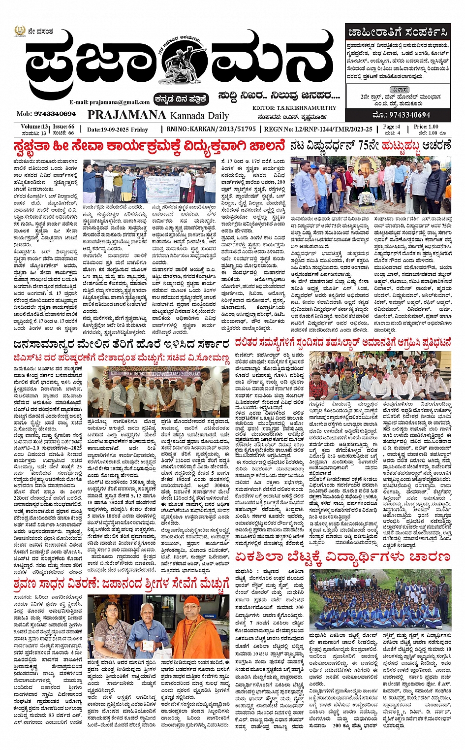 ಪ್ರಜಾಮನ 19 SEPTEMBER 2025 September 19, 2025 << First << 1 >> Last >> Page 1Page 2Page 3Page 4 × ಪ್ರಜಾಮನ 19 SEPTEMBER 2025 PRAJAMANA-page-001PRAJAMANA-page-002PRAJAMANA-page-003PRAJAMANA-page-004 << First << 1 >> Last >> PRAJAMANA-page-001PRAJAMANA-page-002PRAJAMANA-page-003PRAJAMANA-page-004 PRAJAMANA-page-001