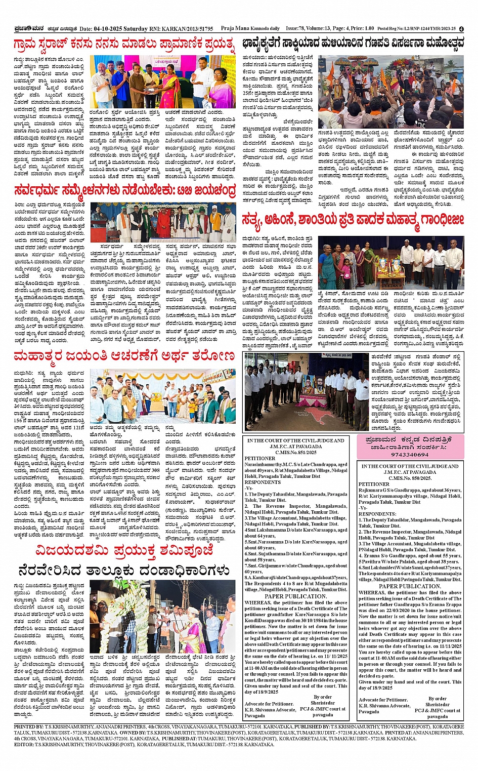 ಪ್ರಜಾಮನ 4 OCTOBER 2025 Page: 4 October 04, 2025 << First << 4 >> Last >> Page 1Page 2Page 3Page 4 × ಪ್ರಜಾಮನ 4 OCTOBER 2025 PRAJAMANA-page-001PRAJAMANA-page-002PRAJAMANA 24-page-003PRAJAMANA-page-004 << First << 4 >> Last >> PRAJAMANA-page-001PRAJAMANA-page-002PRAJAMANA 24-page-003PRAJAMANA-page-004 PRAJAMANA-page-004