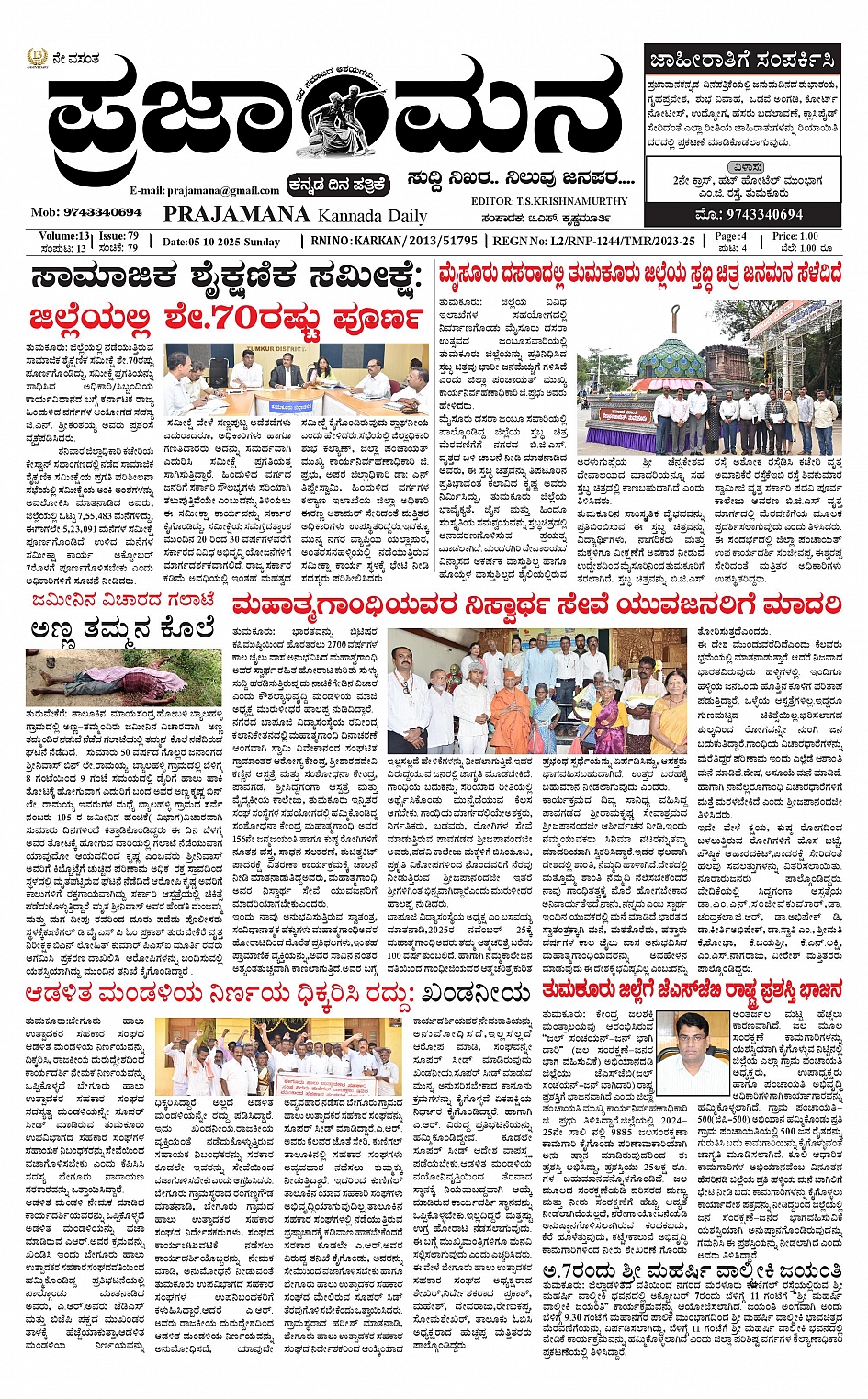 ಪ್ರಜಾಮನ 5 OCTOBER 2025 October 05, 2025 << First << 1 >> Last >> Page 1Page 2Page 3Page 4 × ಪ್ರಜಾಮನ 5 OCTOBER 2025 PRAJAMANA-page-001PRAJAMANA-page-002PRAJAMANA-page-003PRAJAMANA-page-004 << First << 1 >> Last >> PRAJAMANA-page-001PRAJAMANA-page-002PRAJAMANA-page-003PRAJAMANA-page-004 PRAJAMANA-page-001