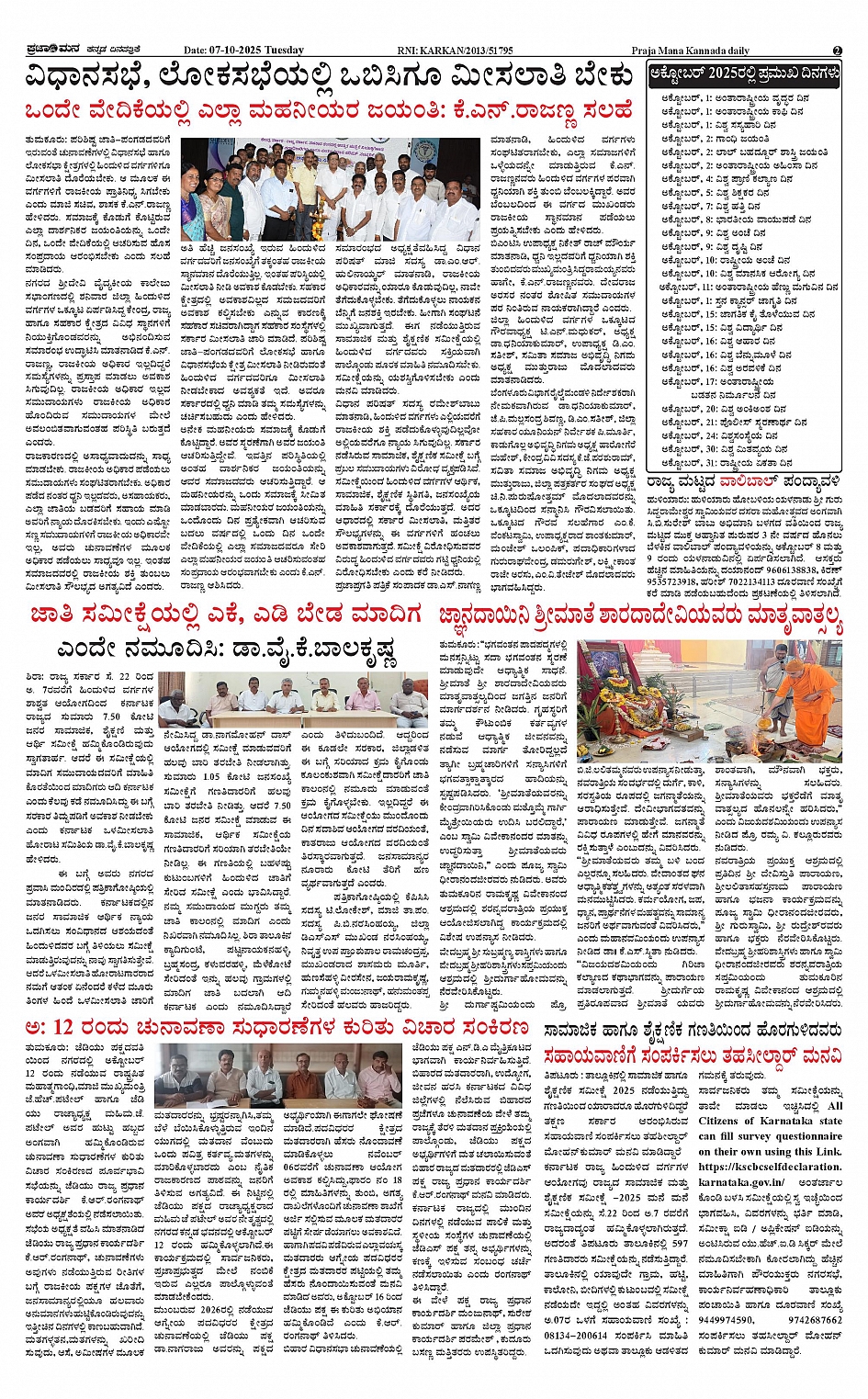ಪ್ರಜಾಮನ 7 OCTOBER 2025 Page: 2 October 07, 2025 << First << 2 >> Last >> Page 1Page 2Page 3Page 4 × ಪ್ರಜಾಮನ 7 OCTOBER 2025 PRAJAMANA-page-001PRAJAMANA-page-002PRAJAMANA-page-003PRAJAMANA-page-004 << First << 2 >> Last >> PRAJAMANA-page-001PRAJAMANA-page-002PRAJAMANA-page-003PRAJAMANA-page-004 PRAJAMANA-page-002