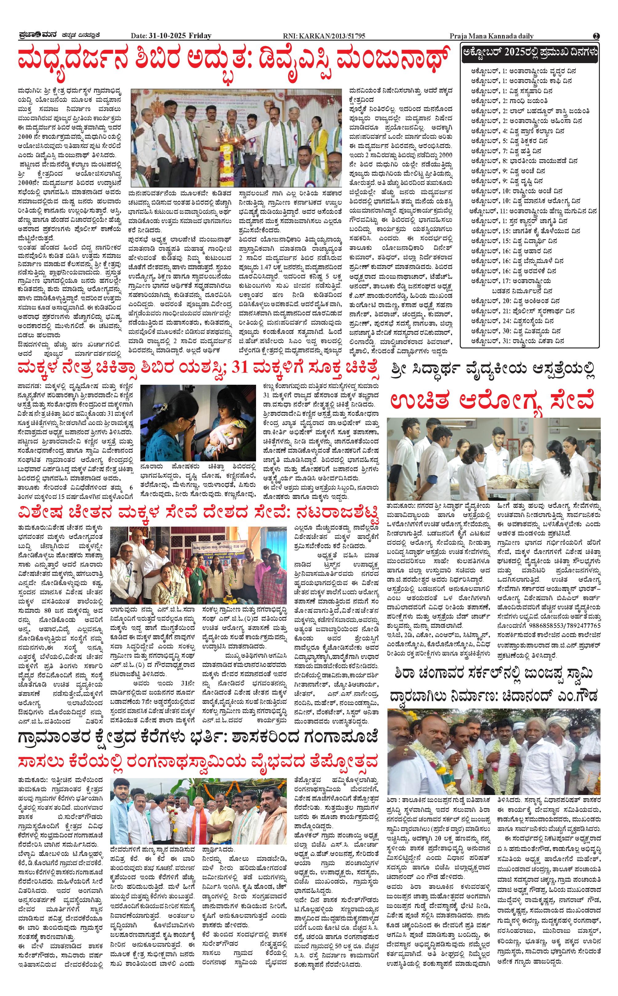 ಪ್ರಜಾಮನ 31 OCTOBER 2025 Page: 2 October 31, 2025 << First << 2 >> Last >> Page 1Page 2Page 3Page 4 × ಪ್ರಜಾಮನ 31 OCTOBER 2025 PRAJAMANA-page-001PRAJAMANA-page-002PRAJAMANA-page-003PRAJAMANA-page-004 << First << 2 >> Last >> PRAJAMANA-page-001PRAJAMANA-page-002PRAJAMANA-page-003PRAJAMANA-page-004 PRAJAMANA-page-002
