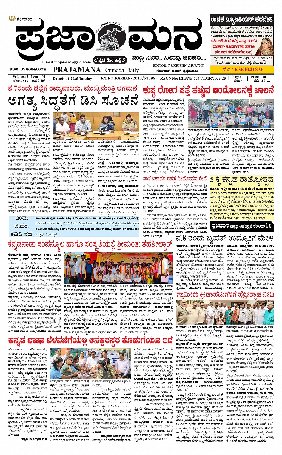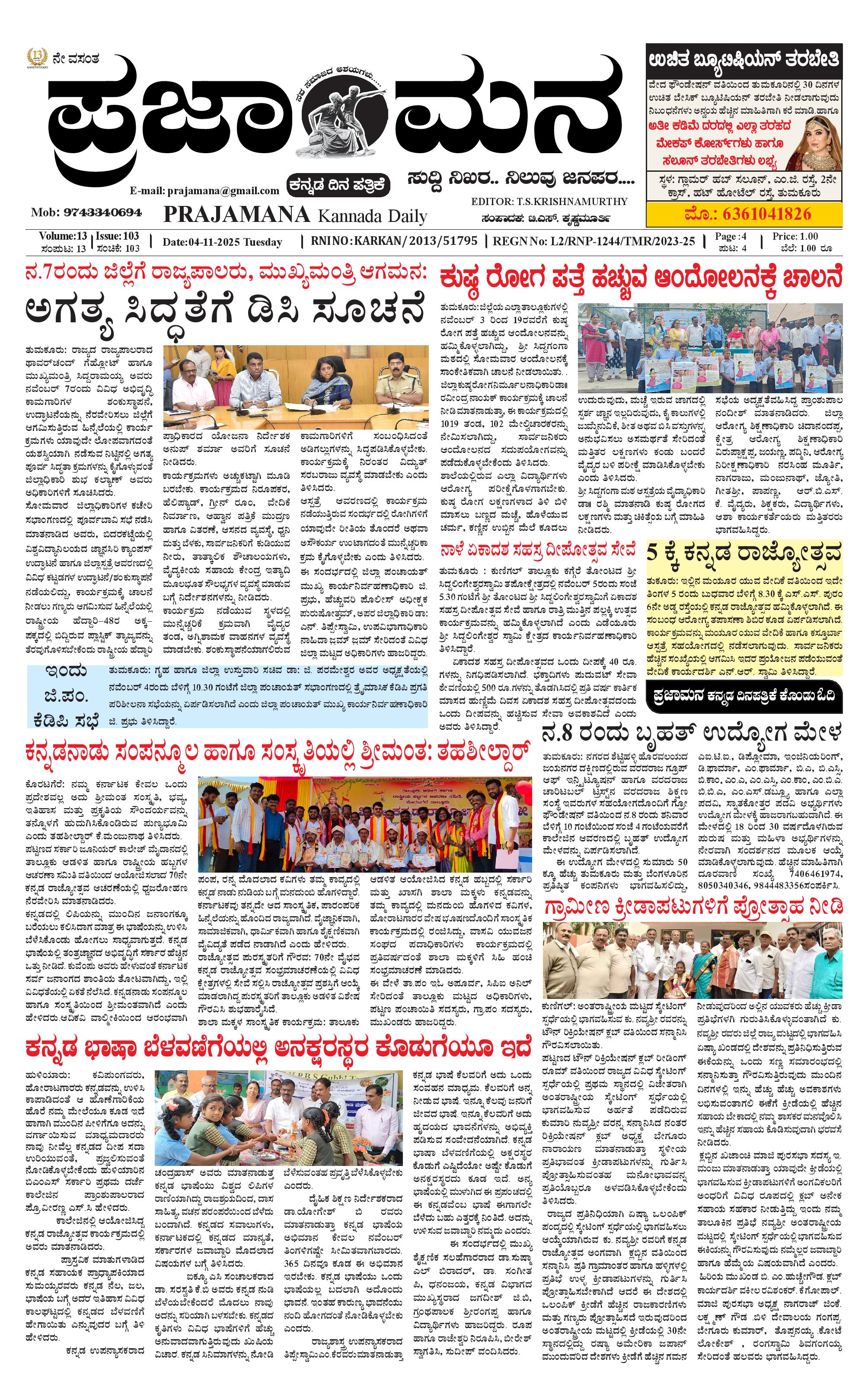ಪ್ರಜಾಮನ 04 NOVEMBER 2025 November 04, 2025 << First << 1 >> Last >> Page 1Page 2Page 3Page 4 × ಪ್ರಜಾಮನ 04 NOVEMBER 2025 PRAJAMANA-page-001PRAJAMANA-page-002PRAJAMANA-page-003PRAJAMANA-page-004 << First << 1 >> Last >> PRAJAMANA-page-001PRAJAMANA-page-002PRAJAMANA-page-003PRAJAMANA-page-004 PRAJAMANA-page-001