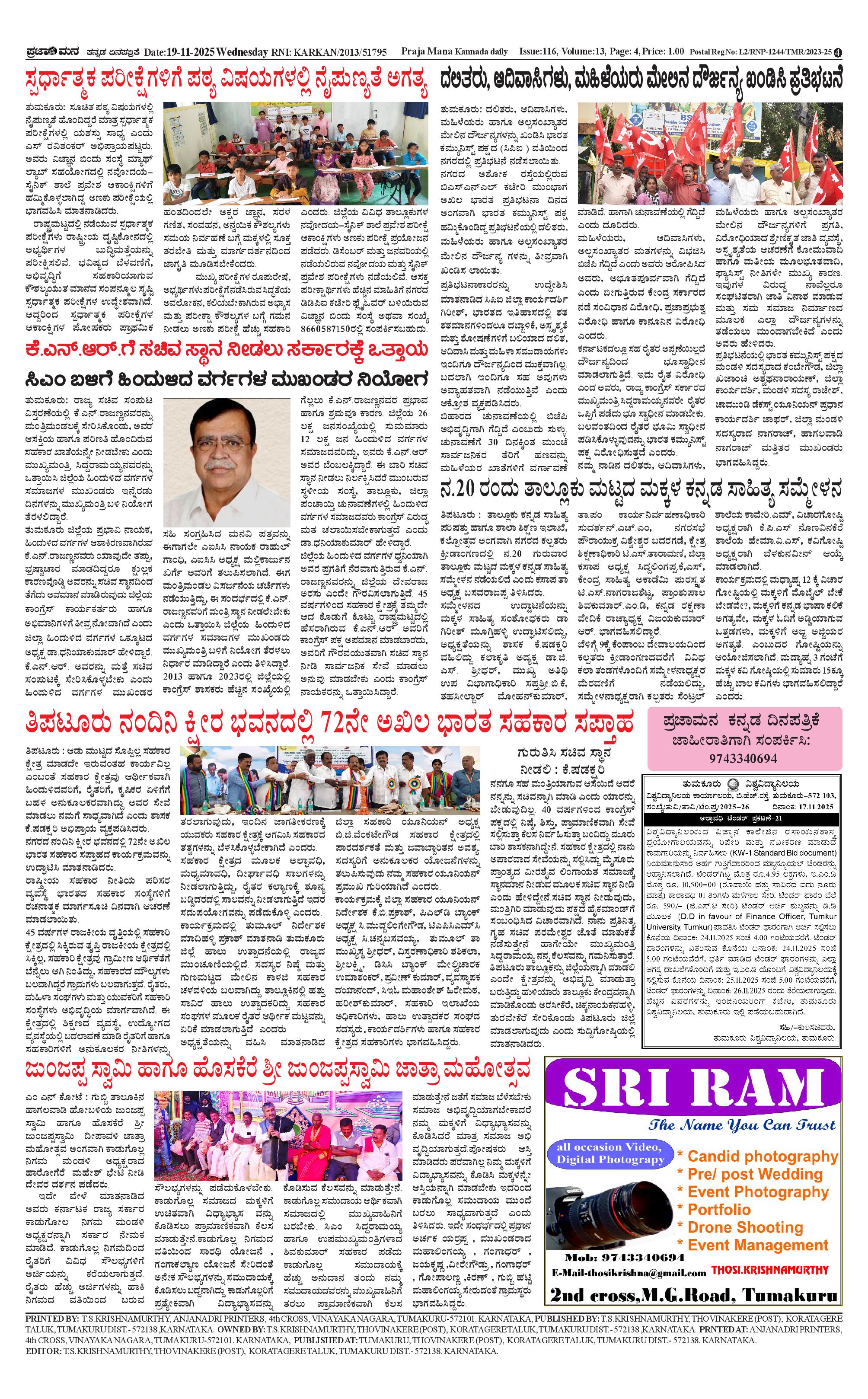 ಪ್ರಜಾಮನ 19 NOVEMBER 2025 Page: 4 November 19, 2025 << First << 4 >> Last >> Page 1Page 2Page 3Page 4 × ಪ್ರಜಾಮನ 19 NOVEMBER 2025 PRAJAMANA-page-001PRAJAMANA-page-002PRAJAMANA-page-003PRAJAMANA-page-004 << First << 4 >> Last >> PRAJAMANA-page-001PRAJAMANA-page-002PRAJAMANA-page-003PRAJAMANA-page-004 PRAJAMANA-page-004